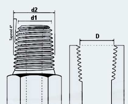 La geometría cónica hace que los lados de la rosca se compriman entre sí a medida que se aprieta, creando una barrera metálica que se complementa con cinta de PTFE o sellador anaeróbico.